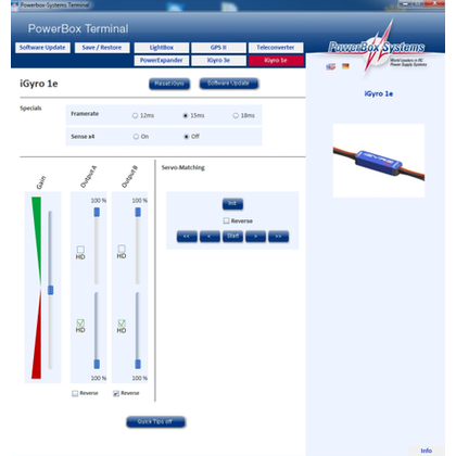 | | The package is rounded off by two additional functions: frame-rate adjustment and Gyro-Sense x 4, which is designed for large, sluggish models. All the components employed in the iGyro 1e satisfy the same high quality standards as the large iGyro systems, and the device is 100% “Made in Germany”. Although the iGyro 1e is an obvious choice for small models, its quality means that it also guarantees the highest standards of precision and security in valuable High-End models. The iGyro 1e can be installed in any model where there is only a need to stabilise one axis, whether the model is a glider, a jet or a power model. The iGyro 1e’s micro size even allows it to be squeezed into any F3B and F5J glider, and even in an RC model car, which will then maintain its exact heading with great reliability!